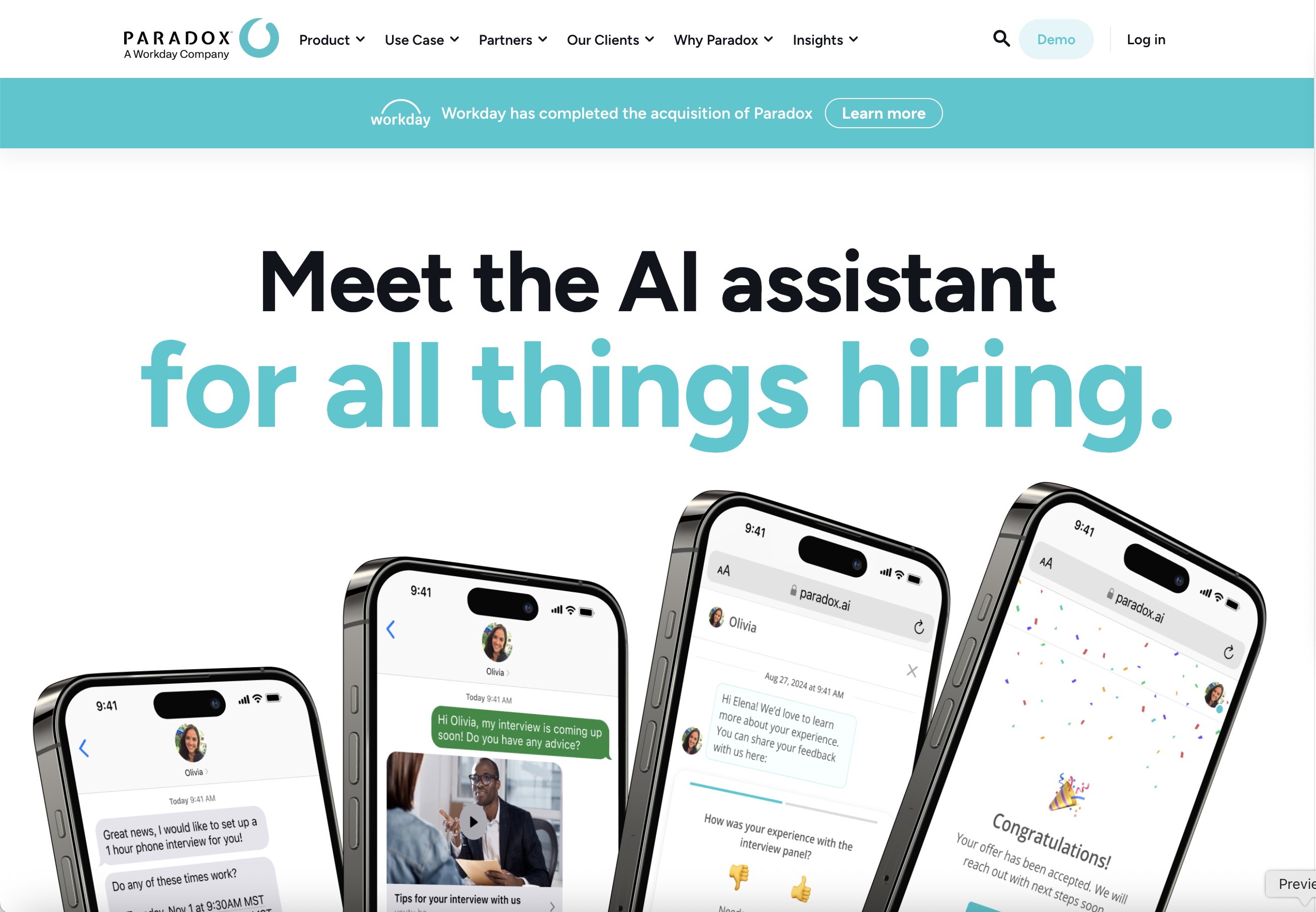 Paradox Olivia manages candidate communication through conversational AI that keeps hiring pipelines active.
