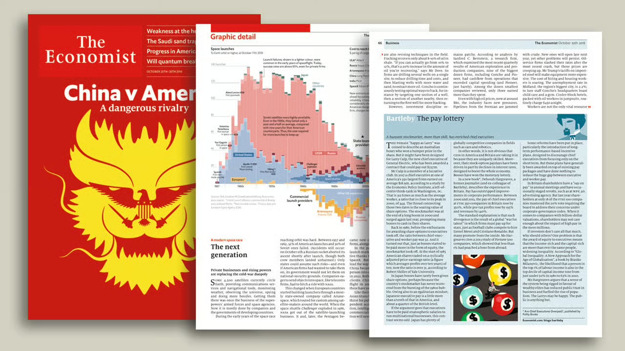 The Economist's editorial layout is one of the most disciplined examples of left alignment in publishing