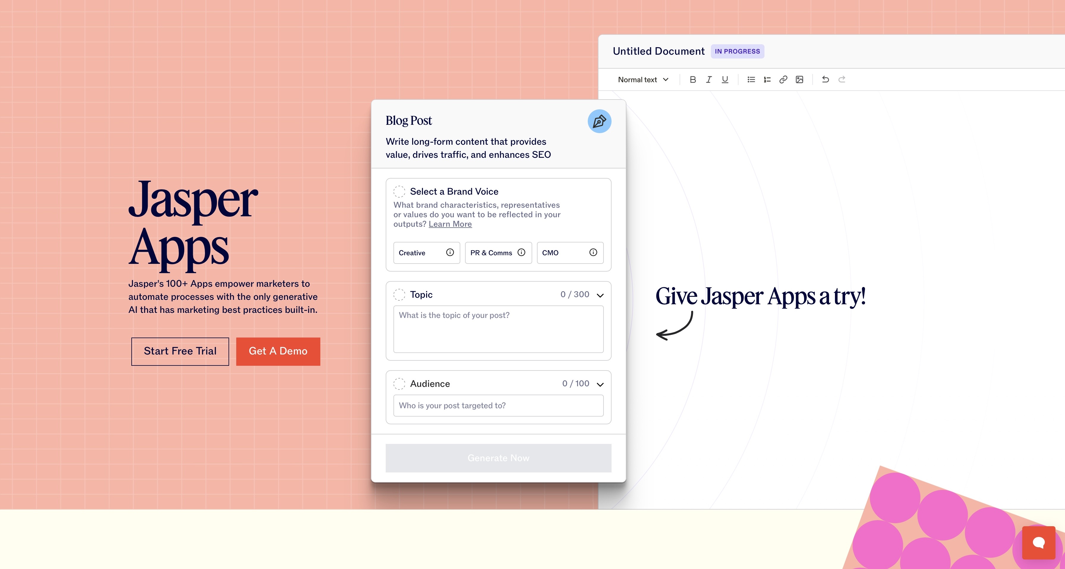 Introduced as an AI writing assistant, Jasper is now upgraded with agentic features and works as a marketing copilot. You can upload the company positioning and strategy documents, and the platform will use that information to generate strategically aligned outputs. It lets you reuse those briefs to create content in different formats, languages, and customer bases.