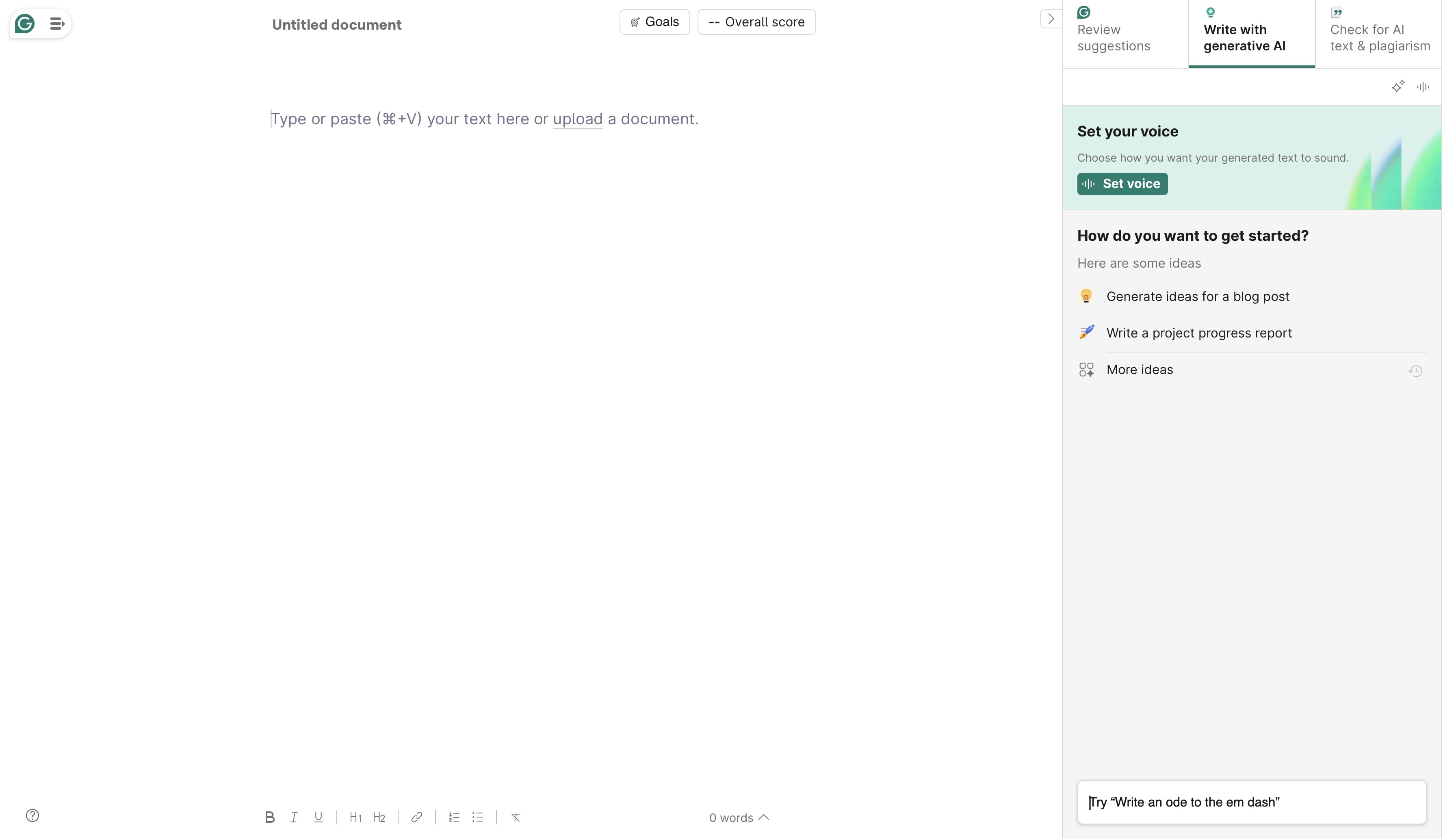 - Grammarly features an AI assistant to help you brainstorm ideas, write drafts, summarize content, or rewrite an entire piece through prompting.