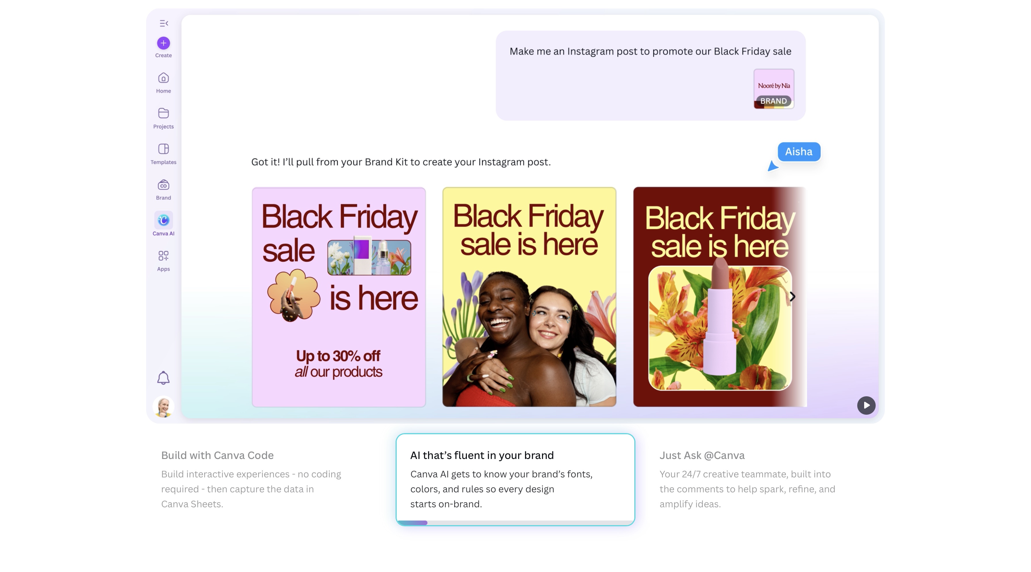 Canva's agent-level capability comes from its Brand Kit and Brand Guardrails system. Users upload logos, color palettes, and font pairings once — and Canva's AI automatically applies those parameters to every piece of generated content. Brand Guardrails actively prevent employees from using non-brand fonts or colors: if the AI generates an image with the wrong green, Canva auto-corrects it to the specified hex code.