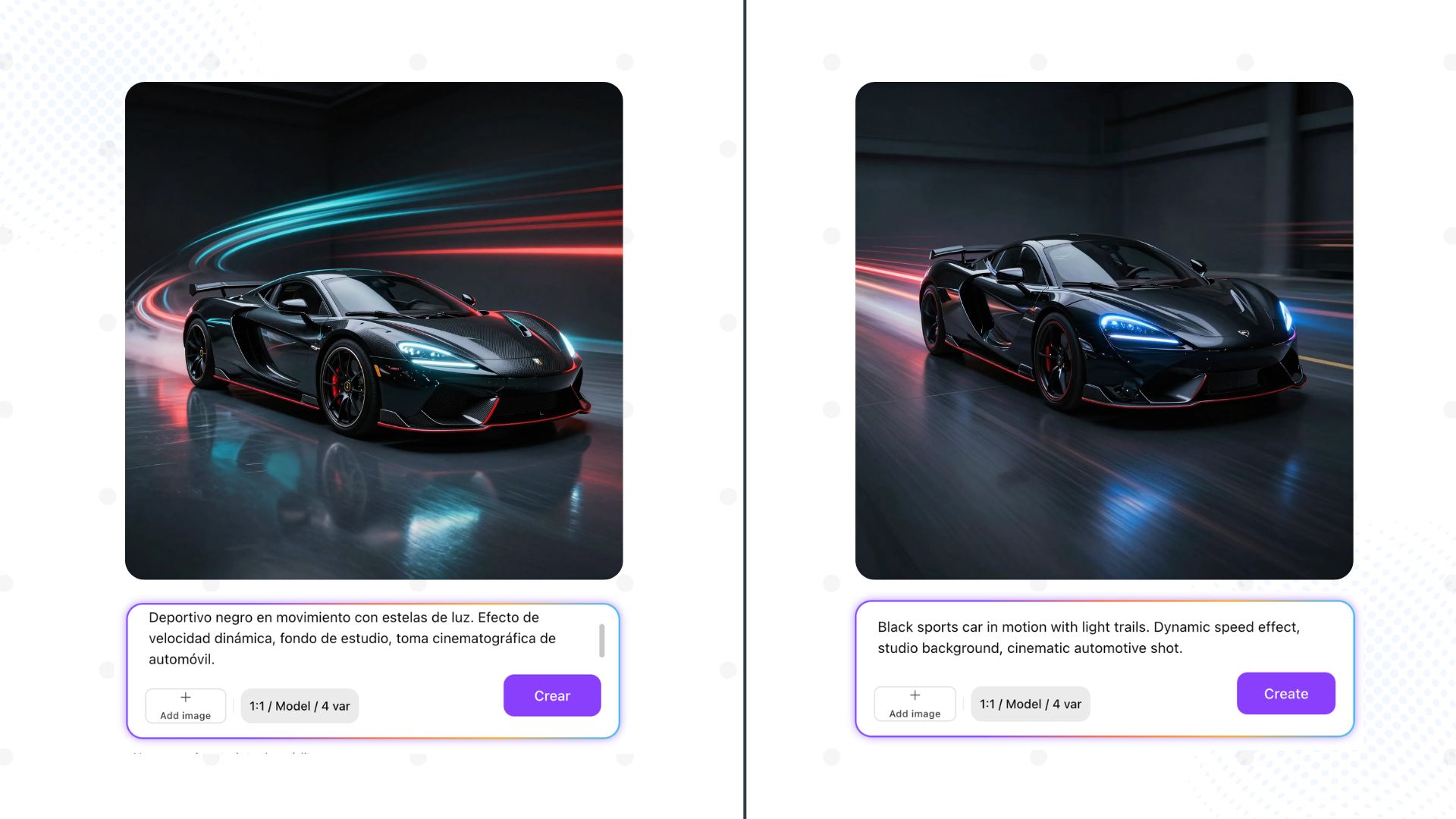 Whether you're a designer in Jakarta typing in Indonesian, a content creator in Moscow working in Russian, or a marketing professional in Mexico City crafting prompts in Spanish, the output quality is designed to be consistently high.