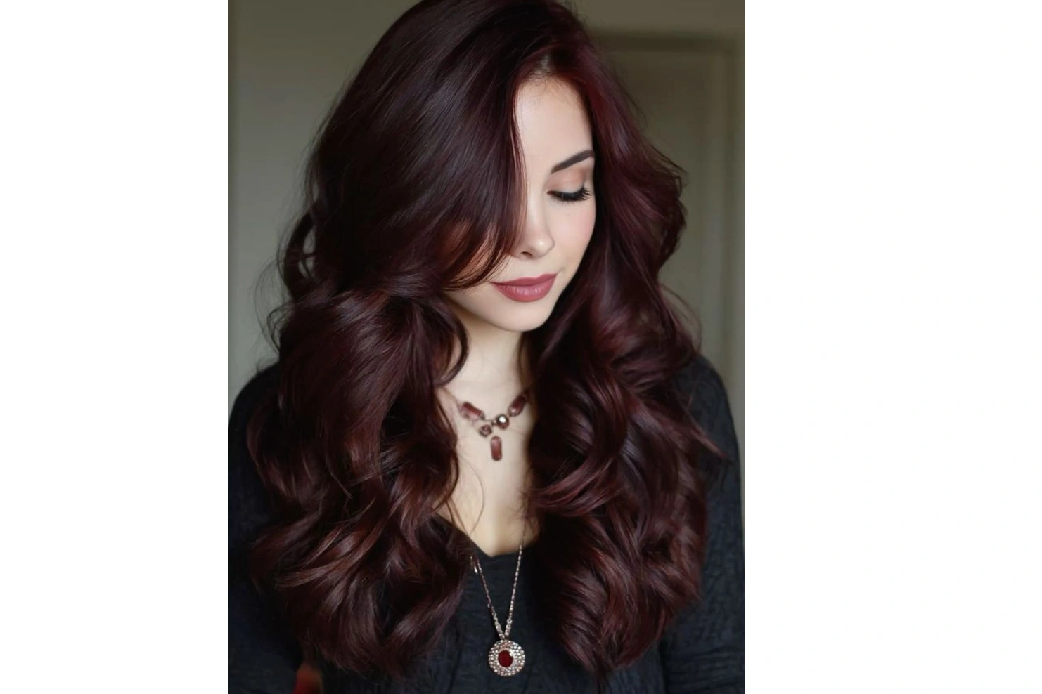 Try it in ImagineArt: "Soft auburn hair color on shoulder-length wavy hair, warm toned, natural finish"