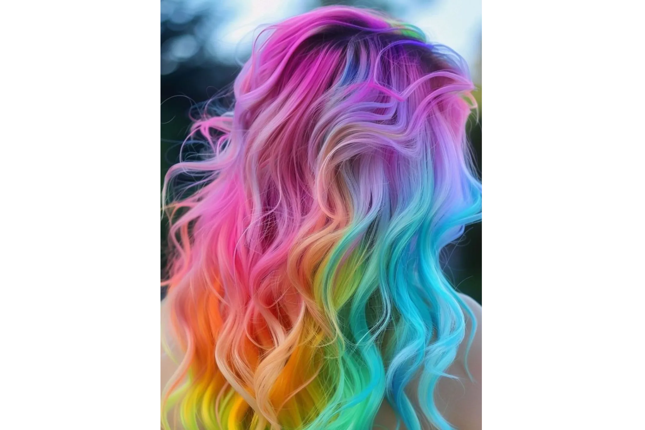 - Full rainbow is one option, but two-tone vivids or a single electric color read just as strongly