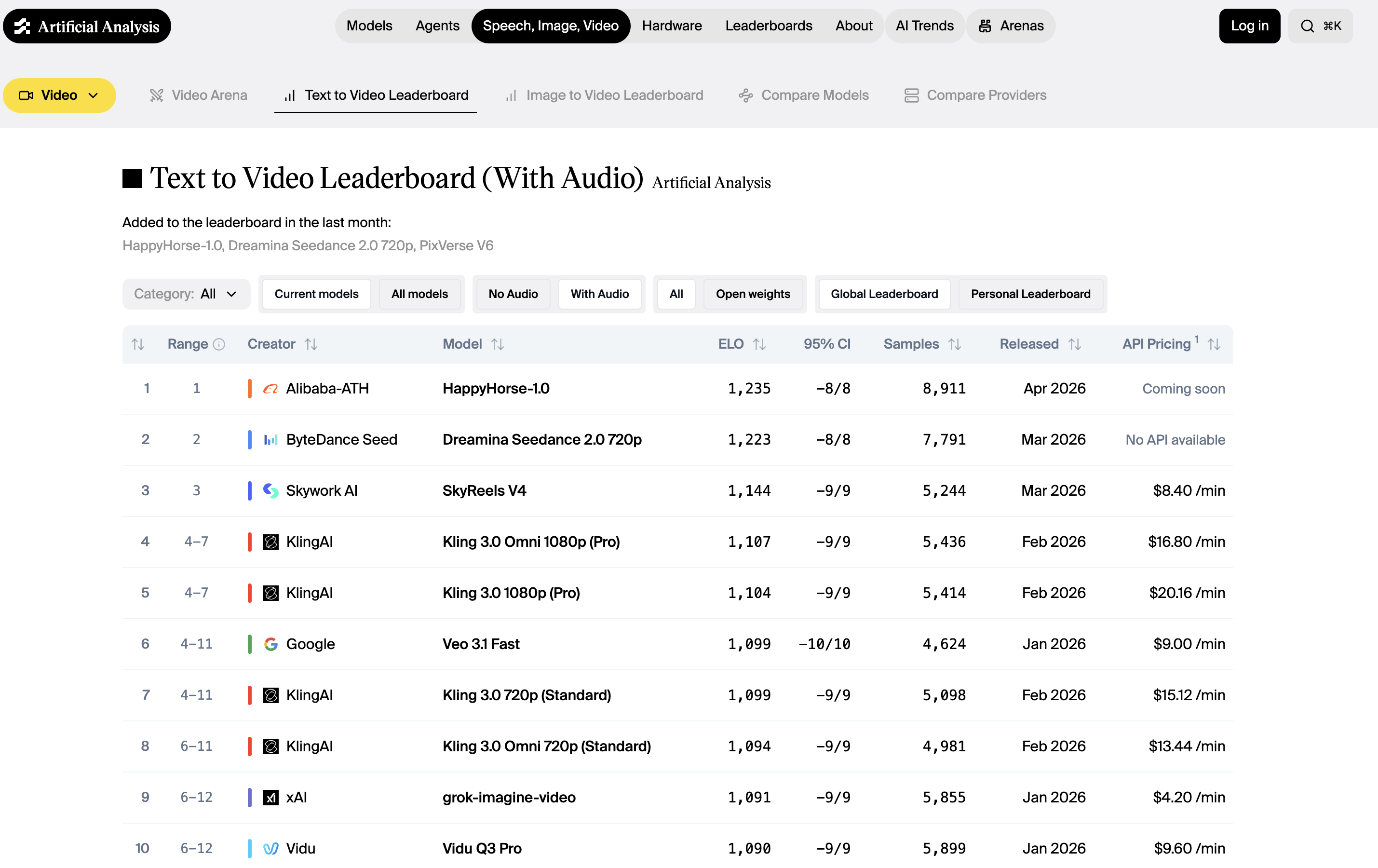 Here is how HappyHorse 1.0 compares to the top-ranked models it displaced on the Artificial Analysis leaderboard: