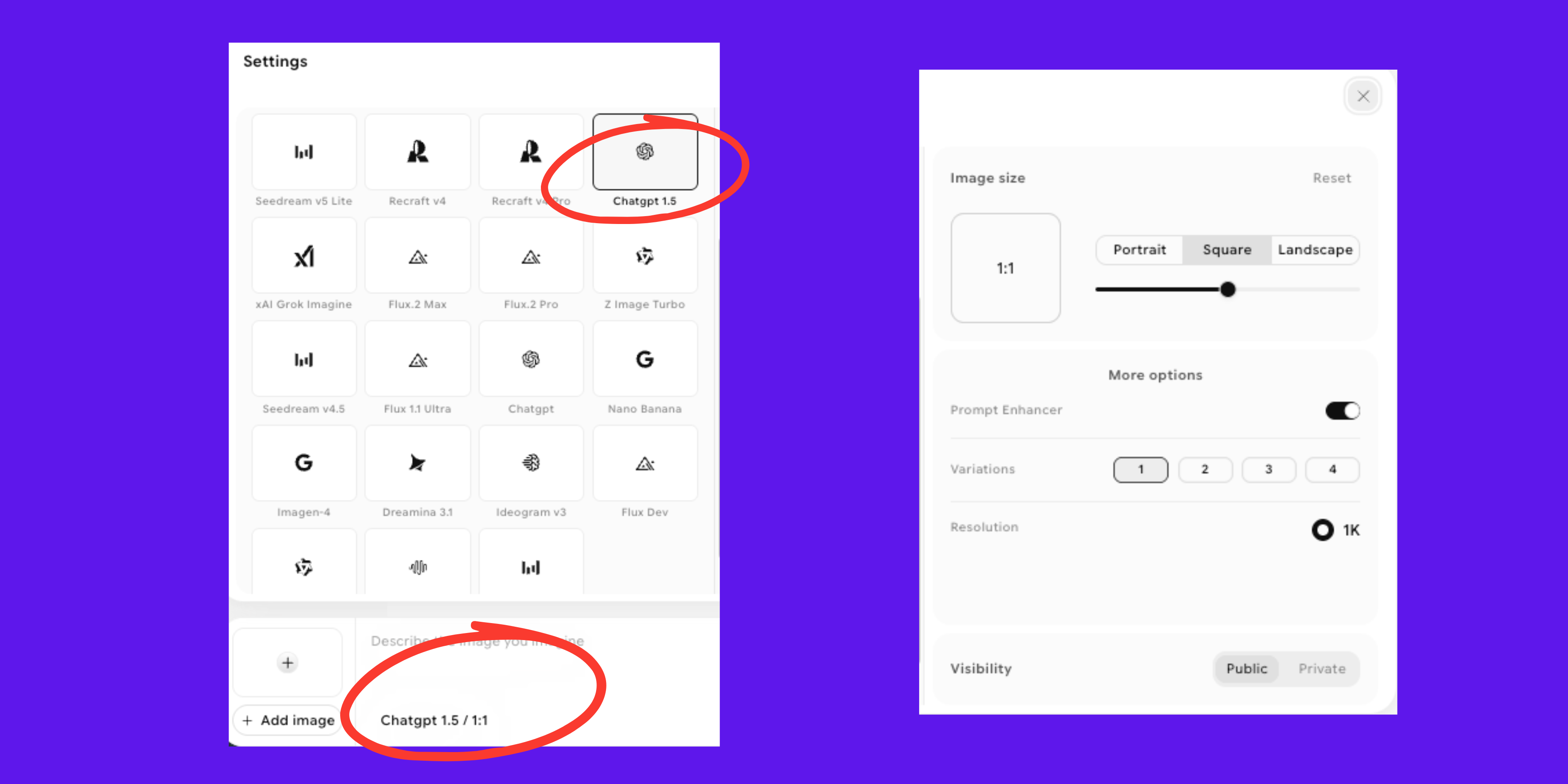 - Open the AI image generator and select GPT Image 1.5 from the model selection