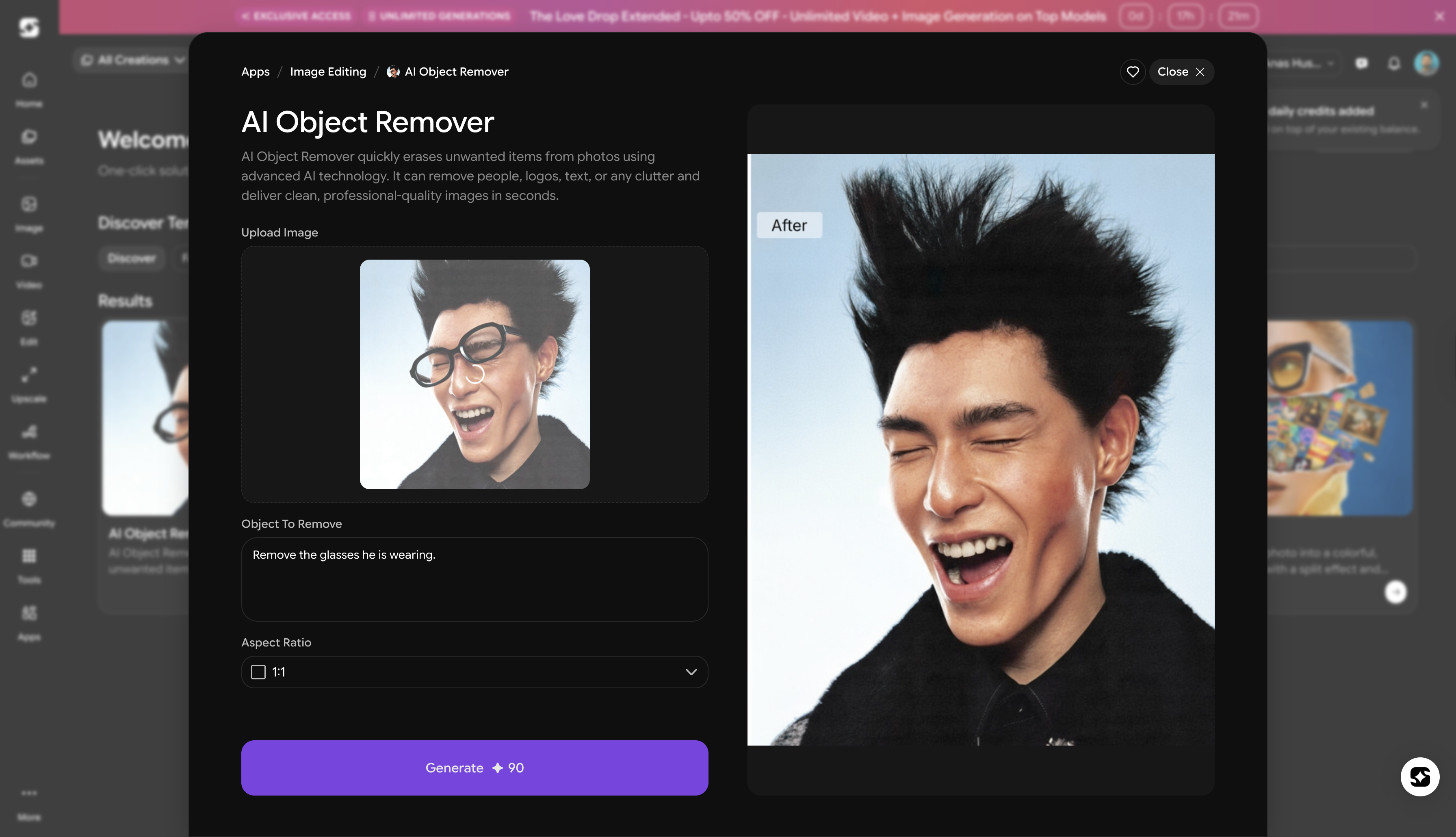 AI models generate contextually aware fills that not just matches the surrounding but also lighting, giving it that real look and feel.