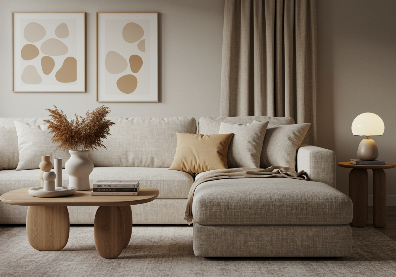 - Low furniture profiles that keep the room feeling open and grounded