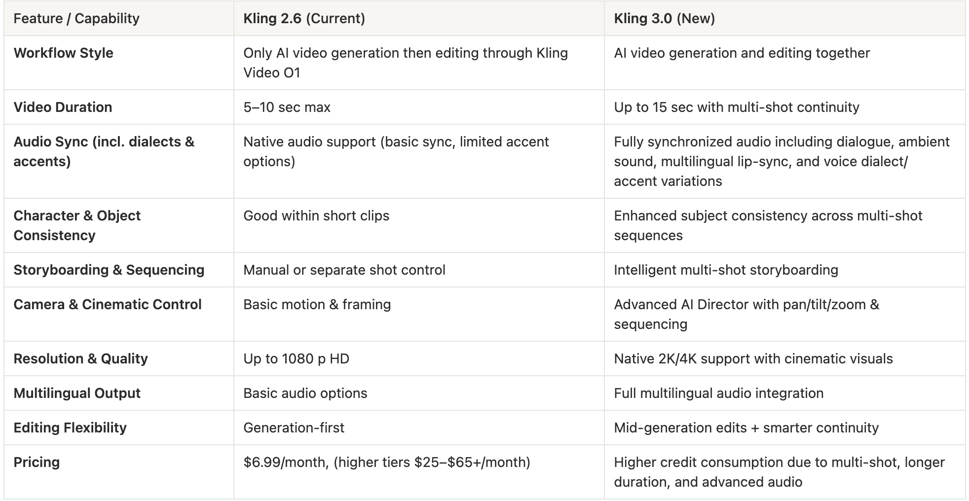 3) Kling 3.0 vs Kling 2.6: The Side-by-Side Comparison