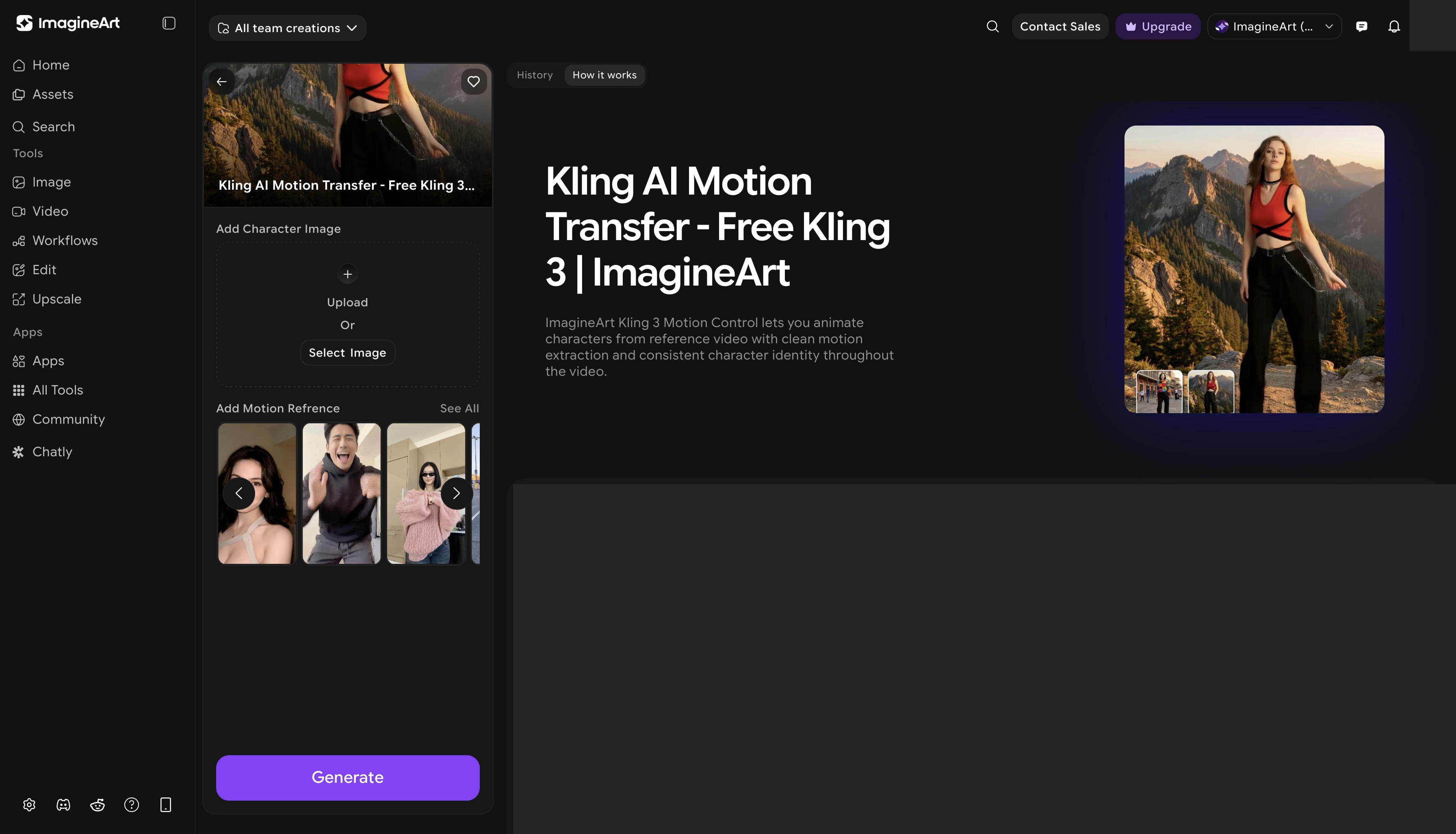 ImagineArt Kling Motion Control brings AI-driven motion to video creation, giving designers and creators the ability to apply cinematic movement to static assets or control motion dynamics in video sequences. The tool allows precise direction of how elements move through a scene, which opens up creative possibilities that would otherwise require complex animation software or expensive production setups. For brand videos, product showcases, and social content, this is a fast path to high-quality motion output.