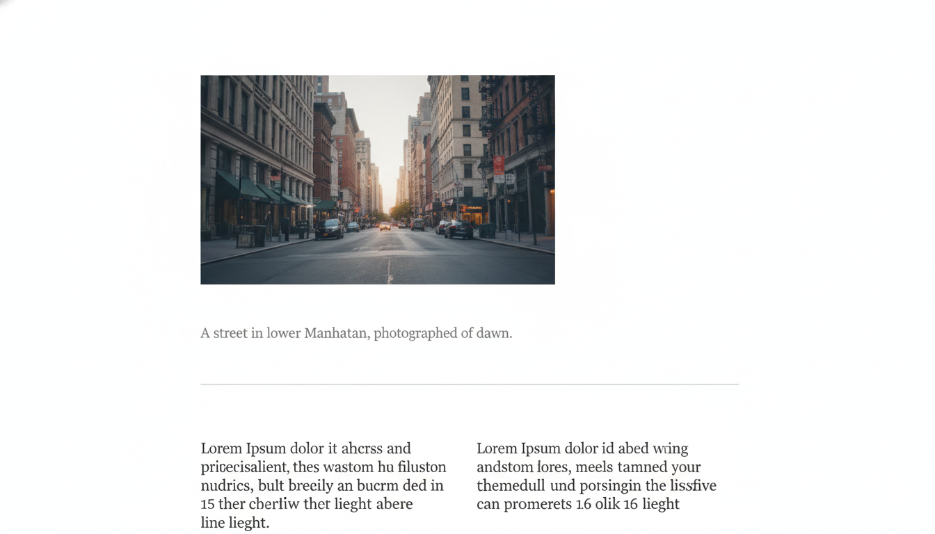 The most fundamental application of proximity is editorial design. A caption placed immediately below an image (4–8px gap) communicates that it describes that image. A caption placed 30px below the image and 25px above the next element is ambiguous as it could relate to either. Always place captions in tight proximity to the element they describe.