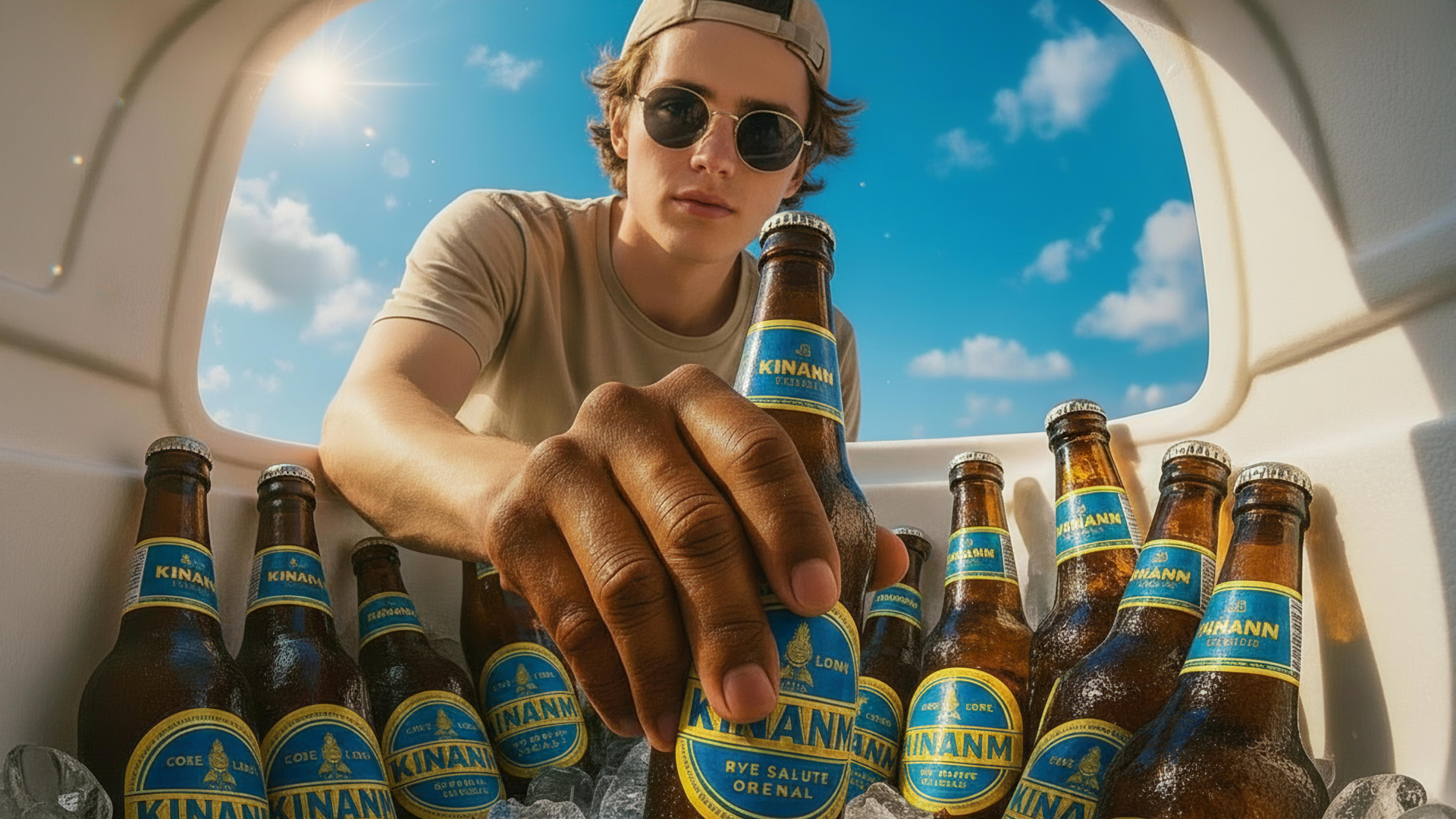 Cinematic product shot demonstrating character swap in a campaign video frame