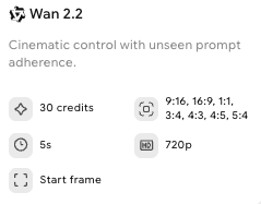 - Start with short clips: You can test concepts with Wan 2.2 before moving to higher-credit models like 2.5 or 2.6. Only use 2.5/2.6 for professional-quality videos.