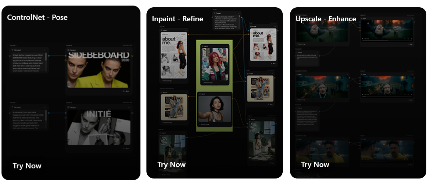 - Workflow infrastructure: Can models be chained into repeatable pipelines, or is each generation a standalone action with no institutional memory?
