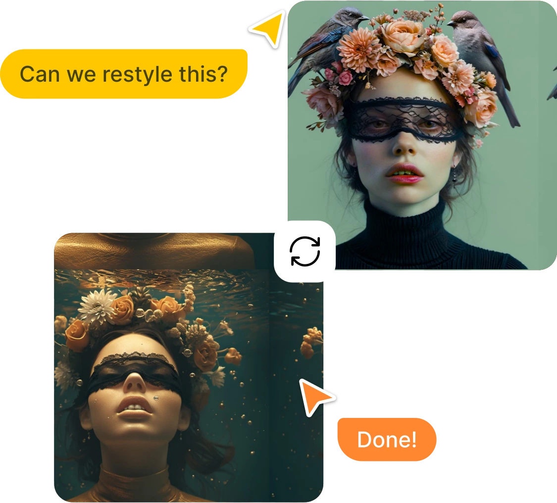 Use existing images as references to guide AI generation. Maintain structure, content, and face consistency while transforming details to match your vision.