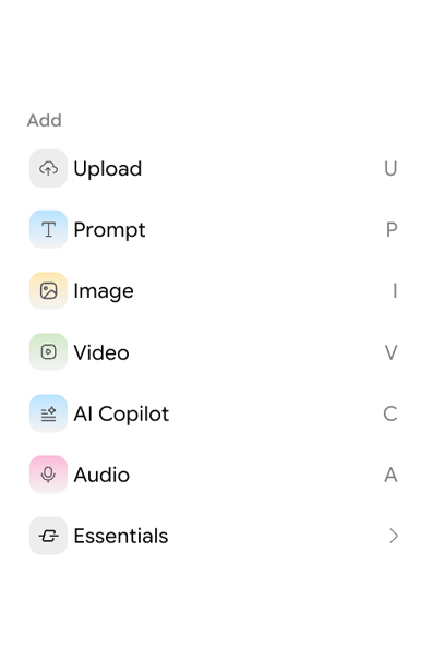 Plan each scene visually on a drag-and-drop canvas. Connect prompts, models, and edits to organize variations, reuse workflows, and manage your creative process. Collaborate seamlessly with your team while keeping everything structured.